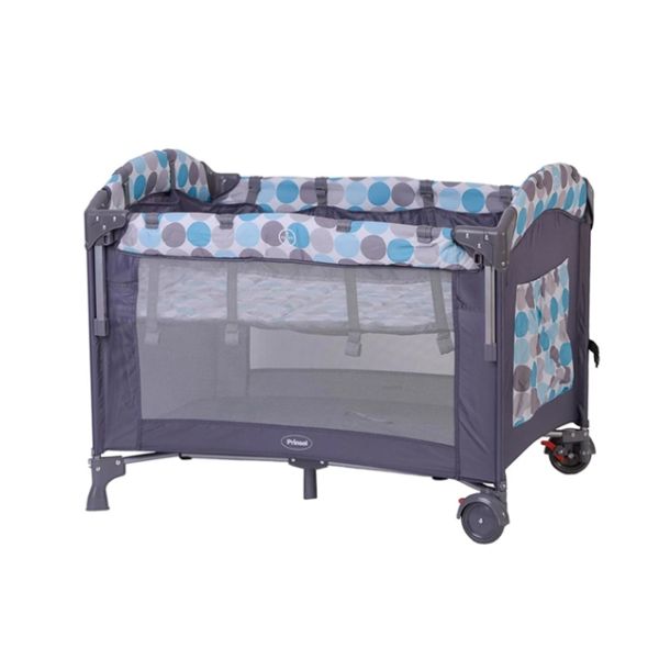 Foldable, includes mattress. Measurements 105cm x 75cm x 114cm.